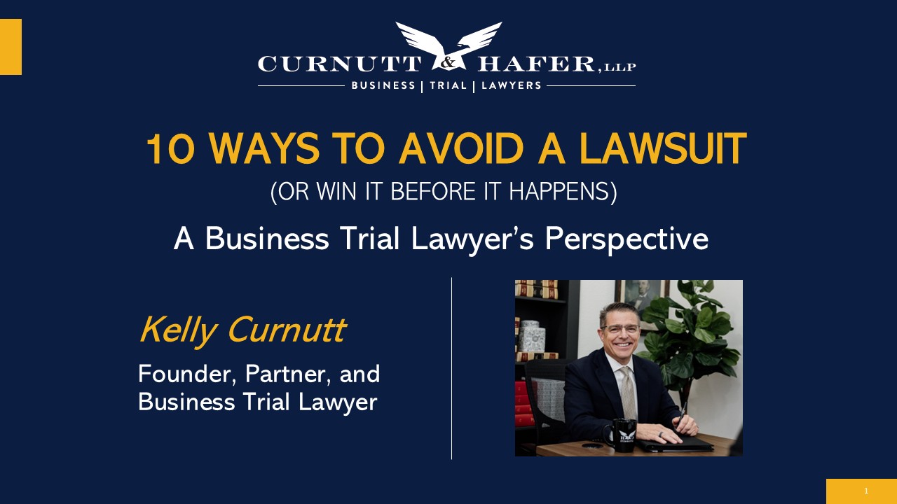 Kelly’s presentation, “10 Ways to Avoid a Lawsuit (or Win it Before it Happens) – A Business Trial Lawyer’s Perspective” offers information and insights into preventing legal issues before they can even arise. He draws on his experience in business formation and disputes, oil & gas, serious personal injury, family law, and appeals. These tips can apply not only to individuals, but small and large business owners, and public and private entities.
